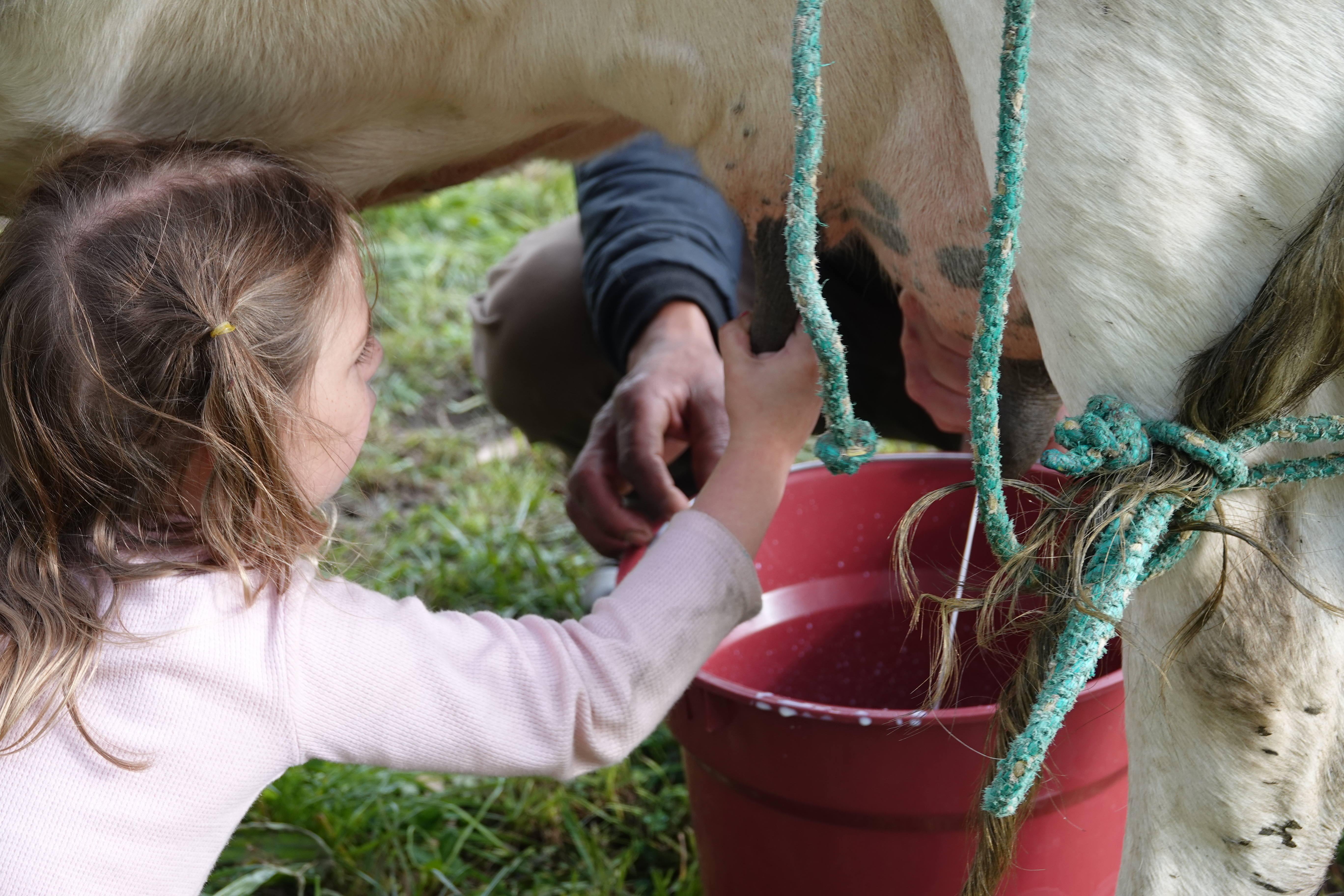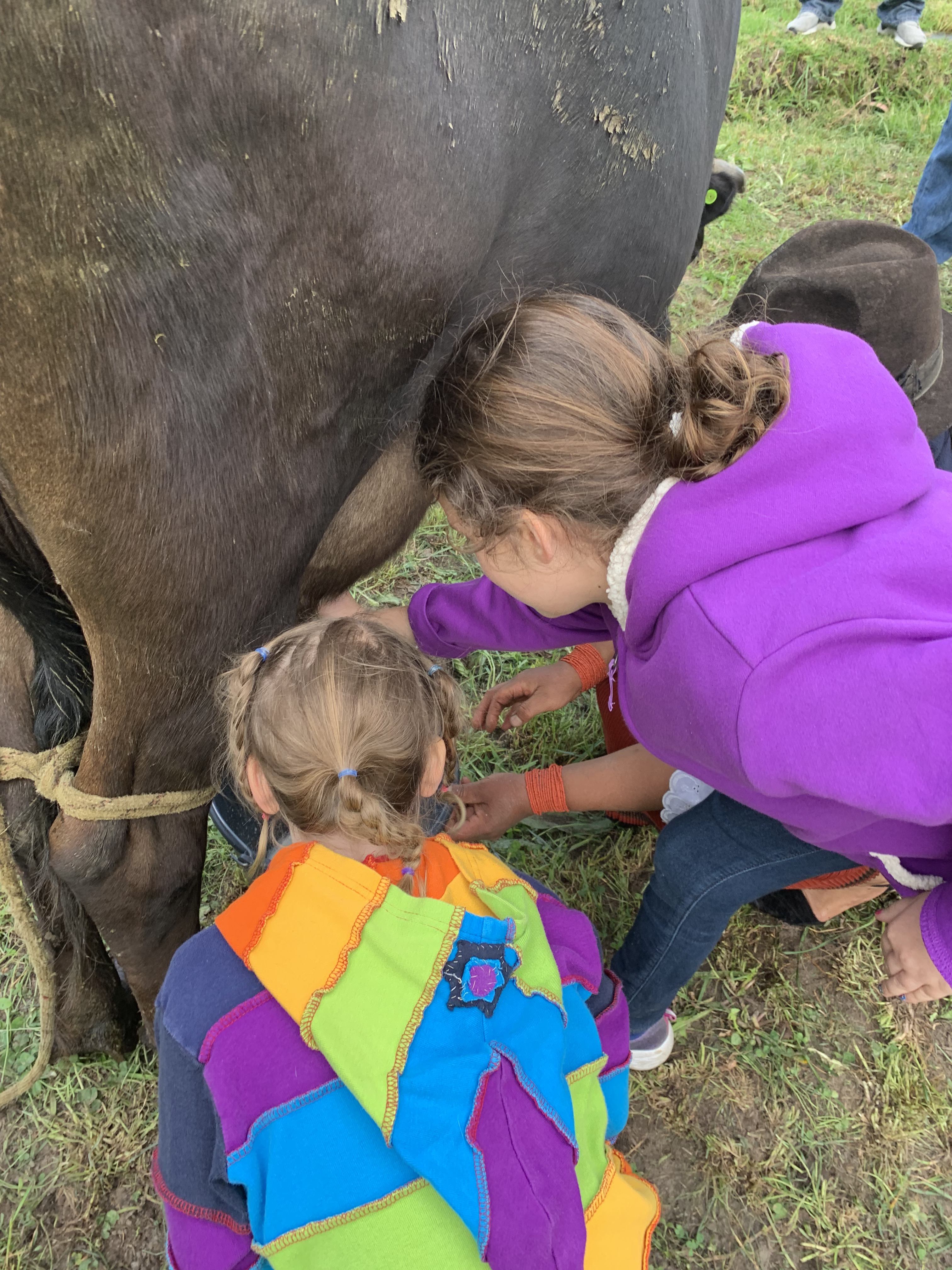 As soon as we got back, the kids raced off to a second day of milking the cows. This time Trey and Gaby had their chance to milk the cow! They looked like old hands after a few minutes of practice! They were true champions to walk through the the minefield of the cow pasture to get the job done! (Lots of shoe cleaning later!) Everyone got milk into the pail. KC LOVES milking the cow. We may have to send her to a farm camp!