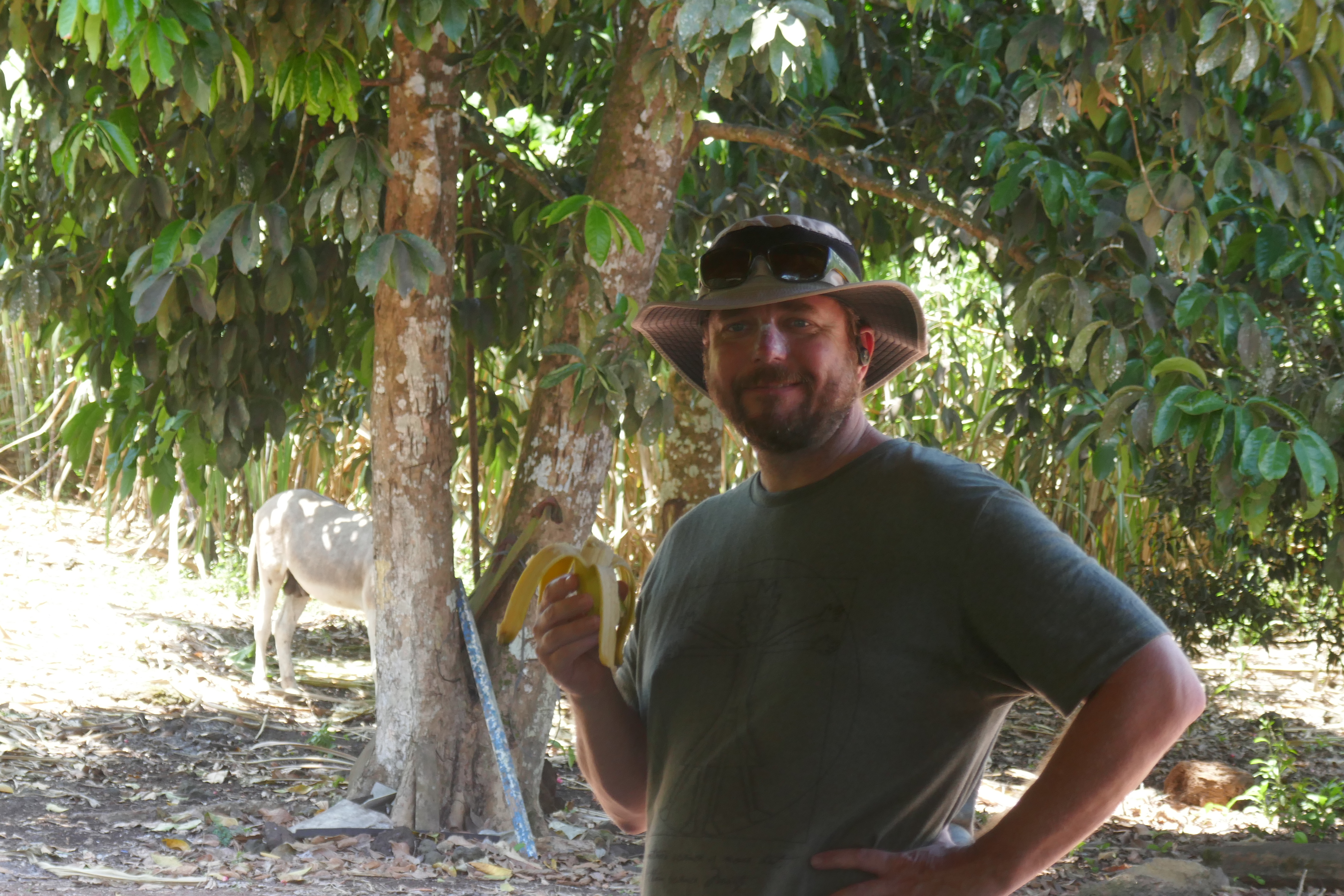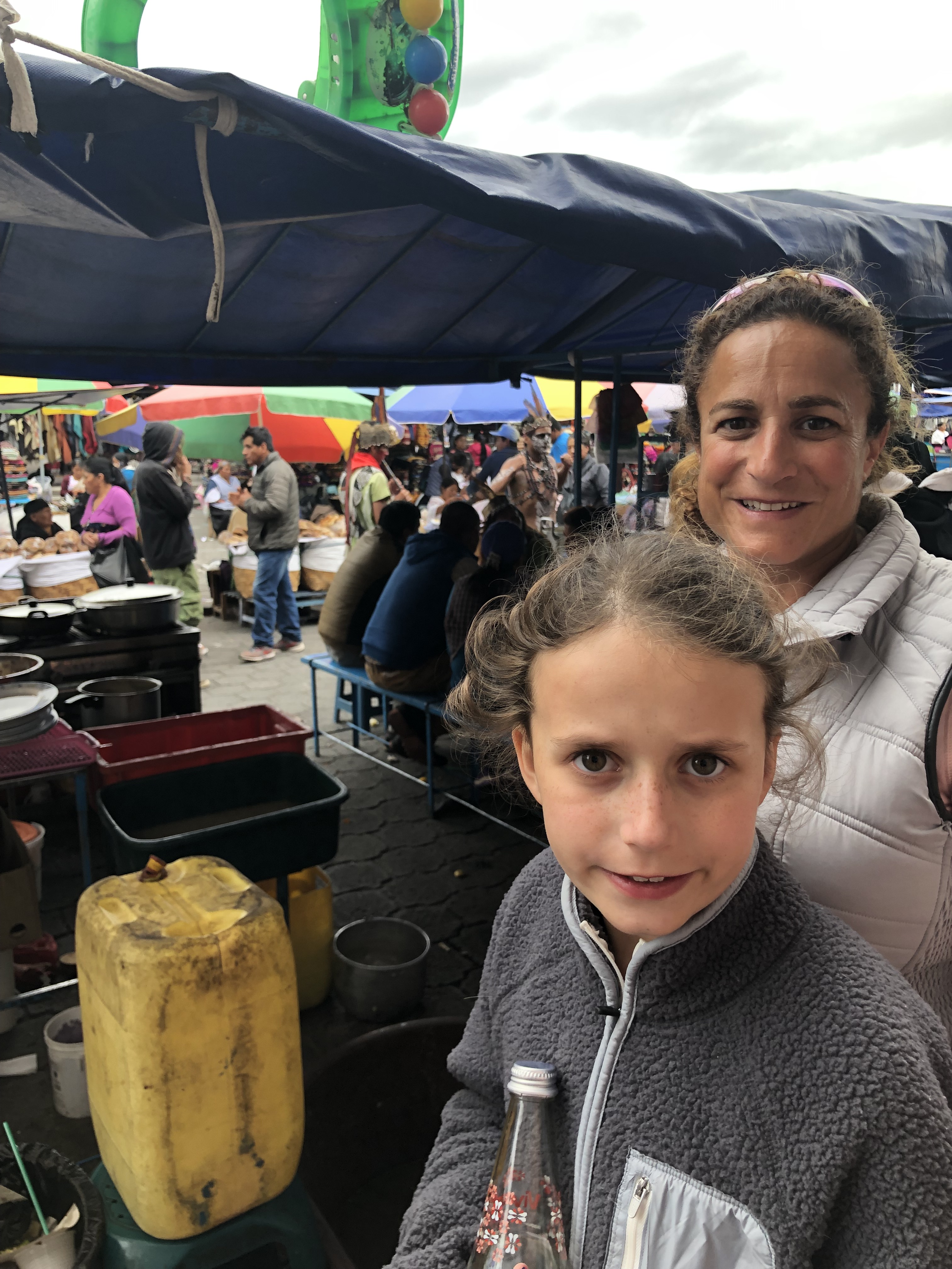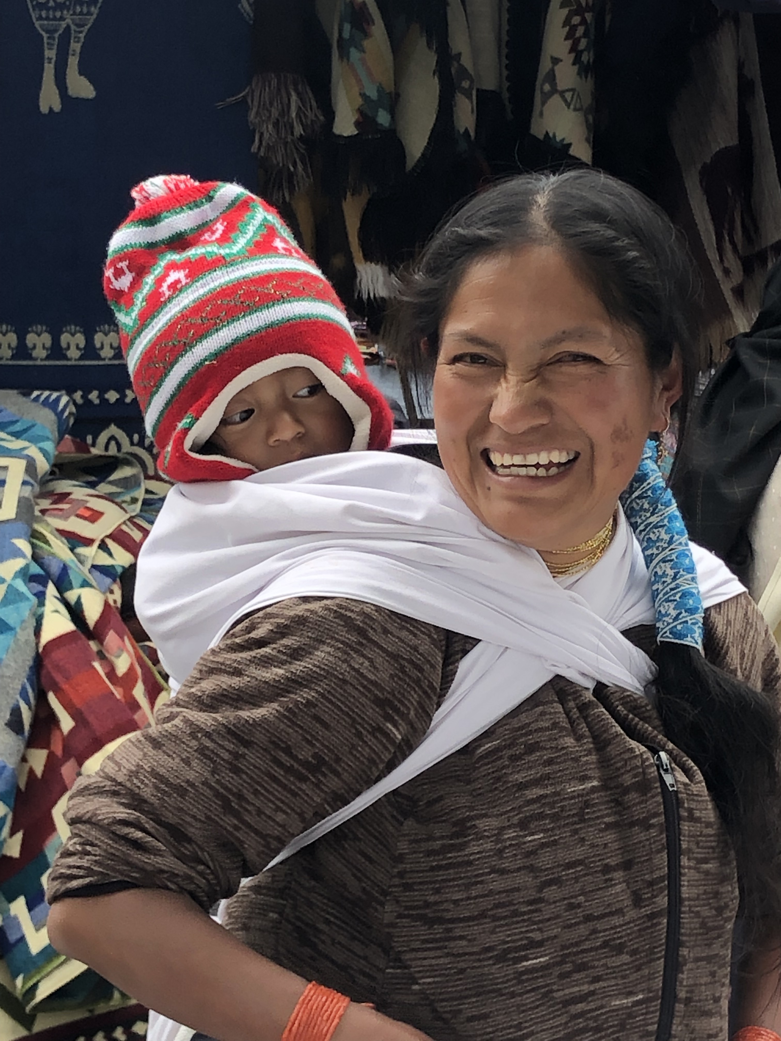 Next we had lunch and finished packing for our ride back to Quito. We are spending the night at the Wyndham Hotel again because our flight leaves at 6:45 am for Miami. We are being picked up at 4:00am. On the drive back to Quito, we stopped at a local market where there were lots of locally made items. We did a little shopping of course! We also made a brief stop at the spot that is the center of the equator. We literally had one foot in the Northern Hemisphere and one foot in the Southern Hemisphere.