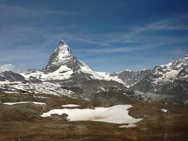This morning we took a cog wheel train to the top of the mountain where there was a magnificent view of the Matterhorn. We saw the second highest mountain in Europe but because of the perspective it looked lower than the Matterhorn!!