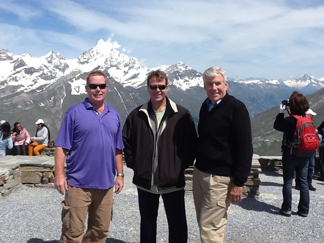 After this fantastic lunch Duffy, Gaby and I all took the train down the mountain while Bill, Grant, Trey and Annette hiked down the Gornergrat. (that is the name of the mountain we were on.) Since they hiked so quickly, as a bonus, the guide, Pritska, took them on an additional hike to the Gorner Gorge! Way to go guys!!!