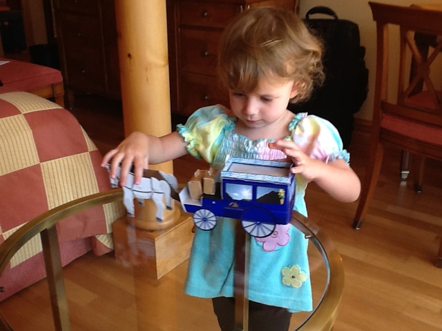 I forgot to mention something very important! We had a surprise “taxi” ride to the Zermatterhof Hotel yesterday– a beautiful blue carriage pulled by a wonderful horse! Gaby has the toy replica of the horse and carriage they gave her!