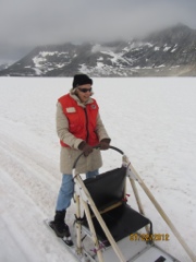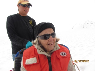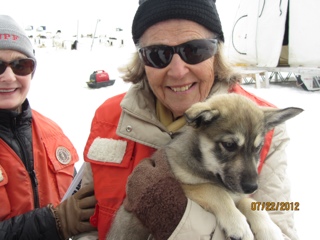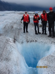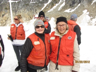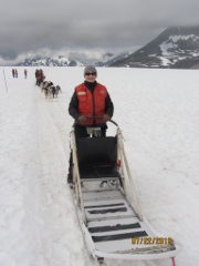 We had fun riding and driving the dog sled team! Well, we weren’t really in control, but it was fun standing on the runners in the back as the dogs pulled the sled! Even Duffy had a go at it and had a ball!! All in all a great day!!! Weather was perfect–crisp, cold but sunny. Today was definitely a highlight of this trip! I was amazed that every glacier we’ve visited (the three glaciers we’ve visited in Alaska, the one in New Zealand and the one in Switzerland all seem so different !! They have similar characteristics, but each one has a definite “personality/flavor”! Our weather continues to hold today. We hope for good weather tomorrow because we’re talking a float plane into the interior to see bears salmon fishing! At least, that’s what we are hoping for!
