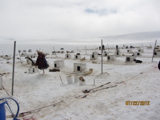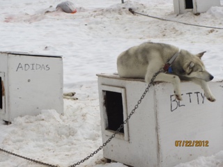 The camp is set up with tents for the dog owners and “mushers” who stay at this camp for the summer months. They get to come down by helicopter one day a week into town. Otherwise, they sleep and eat up there. The are about six “dog owners” and about 240 dogs all together. The Environmental Agency gives them a permit to do this but its strictly regulated! The largest area of concern is cleanliness, so they are constantly picking up after 240 dogs! Can you imagine?! The waste is flown back down by helicopter. Some people complain about picking up after one dog!!!