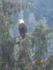 Another awesome day in Alaska! We docked in Ketchikan this morning. It’s the “Salmon Capitol of the world” – or so they claim. Ketchikan gets lots of rain or snow through out the year. The statistics say that it only doesn’t rain 18 days of the year and we hit one of those days! No rain today!! Great day! Weather was sunny early, overcast later, but the day was incredibly warm. I think we hit 70 degrees. Duffy went on a boat ride to see the beautiful wildlife and scenery of the area.