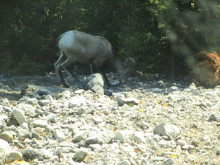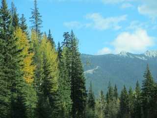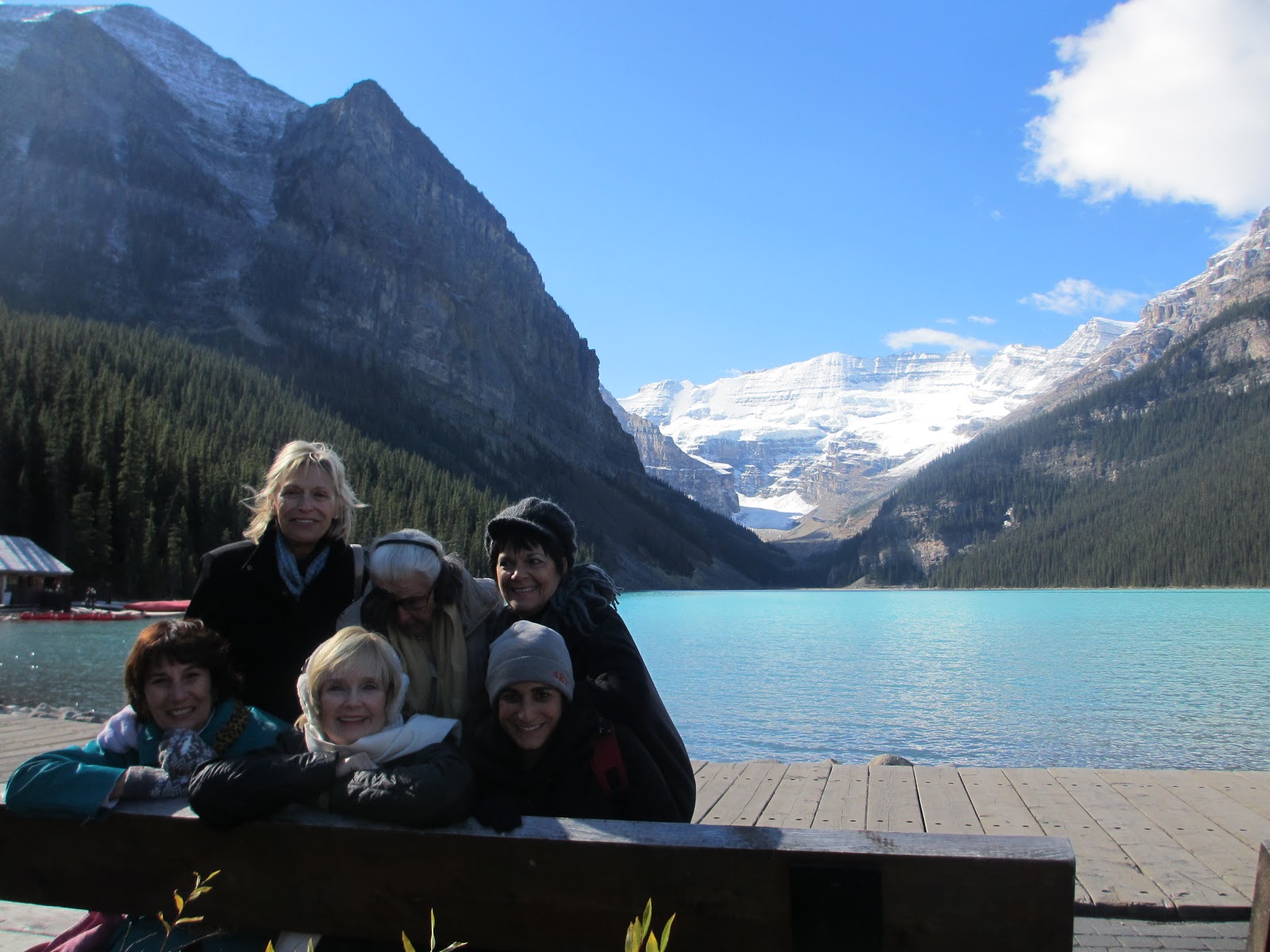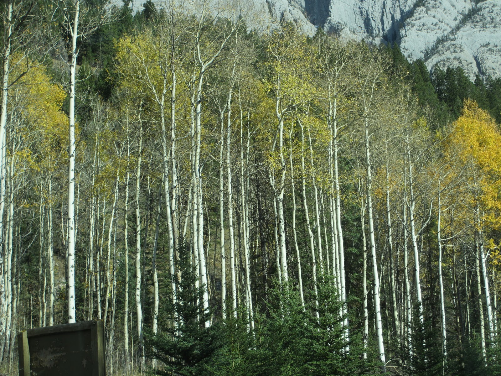 We had a wonderful tour (thanks to a much appreciated gift from our trusty travel agent, Arlene Feen) of the Banff area including Moraine Lake and Lake Louise. We were blessed with the sighting of a Big Horn Rocky Mountain Sheep and an Elk! The foliage, while a surprise (I’ll explain in a second) was gorgeous… We were surprised to learn that there is almost no red fall color in the western part of Canada. You need Oaks and Sugar Maples and those are few and far between in the areas we traversed — Vancouver to Banff. There are, however, beautiful golden aspens! Did you know that an Aspen grove is one of the largest single living organisms in the world? A single tree can grow large enough to cover an entire mountainside while the trees inside the grove are interconnectd through a shared root system. Each tree stands as an individual and is at the same time connected to the whole! Pretty cool, huh?