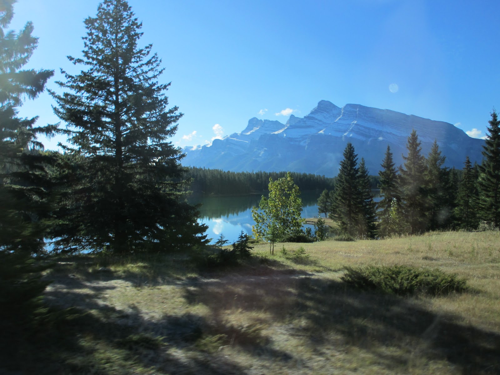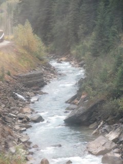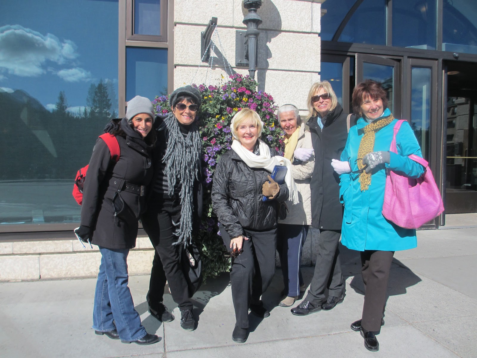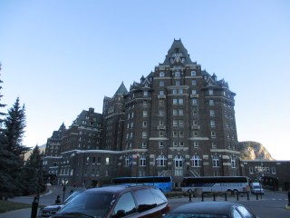 Our last day on the train was so much fun! We sang and laughed and ate VERY well! What more could you want? There was even a gentleman, (sorry I didn’t get his name) who whipped out his harmonica and started playing a lot of old familiar songs! We had the whole car singing and enjoying the day. The only downer for the day was that we were delayed by passing rail traffic for almost three hours. This resulted in our arrival into Banff three hours behind schedule and the last three hours of the trip might have been the most beautiful — but we couldn’t see it! Alas, they tried to make us feel better with the offering of freshly made home made oatmeal raisin cookies! (We all wondered why we saw all the Chefs running back into the kitchen well after lunch time.) It was a worthy try, but we would have preferred the scenery to the calories!!! Not that the delay was anything the Rocky Mountaineer could have controlled… Rail traffic is what it is….