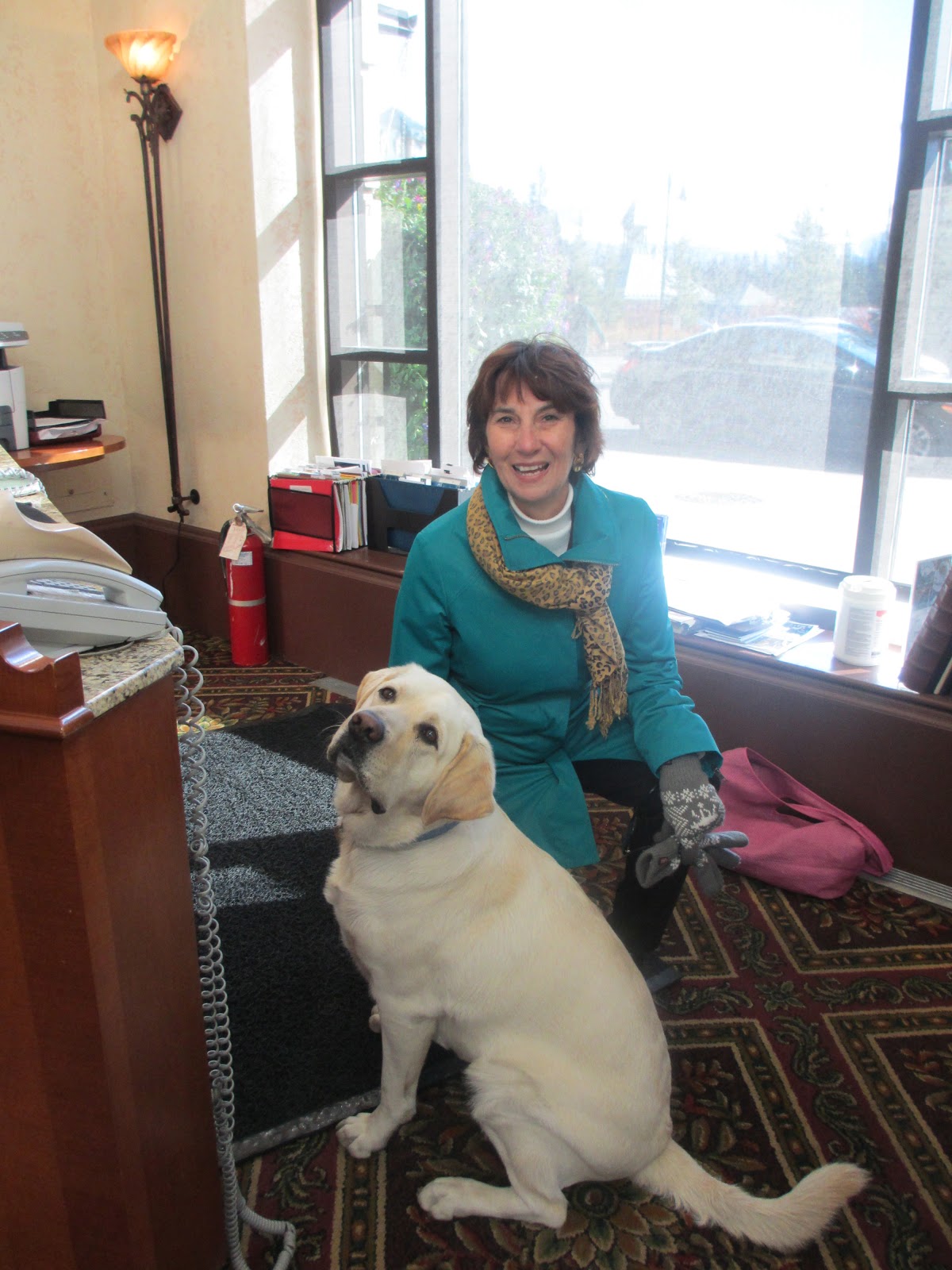 Also, the beautiful lab was at the Lake Louise Lodge. He is their mascot and his name is Marcus.