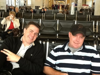 After much scrambling and a lot of different plans our “SUPERWOMAN” travel agent, Arlene Feen, managed to get us on a flight out of Bradley Field in Windsor Lock, CT! She secured a car and driver to pick us up at 5:00am at our hotel and drive us to the airport. Now, as we wait at the gate, we are hoping all goes smoothly in Atlanta! We are trying to get Grant’s friend, Mike, home in time for his daughter’s first Halloween! His son and daughter are going as Batman and Batgirl– something he didn’t want to miss!! Looks like he will make it!
