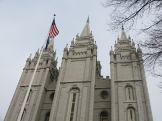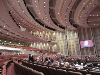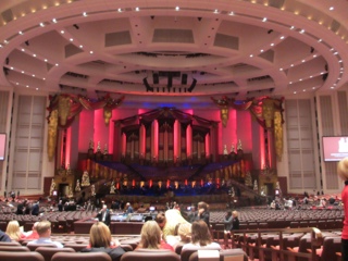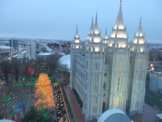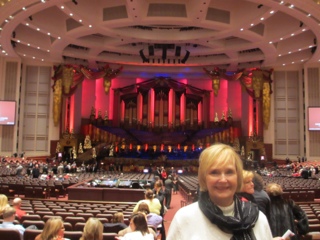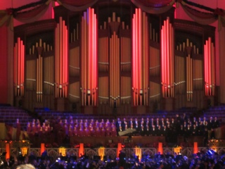 Tonight we had the MOST AMAZING Christmas concert at the Church of the Later Day Saints Conference Center. The center holds over 21,200 people and every seat was filled. We had a VERY early dinner (3:30 pm) in order to be in line when the doors opened at 6:30 pm. The Roof Restaurant is in a hotel in Temple Square and was the perfect spot to dine! We even enjoyed some local school choirs singing in the lobby of the hotel.