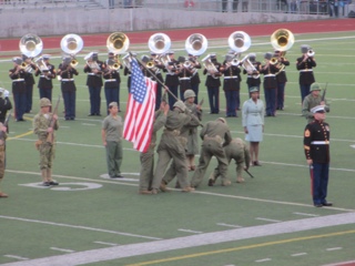After all that, we were off to Band Fest! It was a sample of 6 bands that will be in the parade. We were lucky enough to even see our friends from South Dakota since their daughters band was performing at our session. One of the bands had 400 students and did an amazing job. They were from Broken Arrow, Oklahoma. They had to raise over $400,000 to attend. The last band to perform was the Marine Corp Band! Well, what can I say except that they were spectacular! Not a dry eye in the house!!