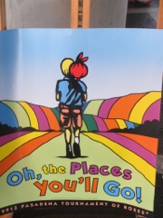 I purchased several water vials and wrote friends names on them. They will hold a rose on the Cal Poly float –Tuxedo Air. It’s theme is from the movie Madagascar — teaching penguins to fly! It’s a cute float!! Look for it. It is toward the end of the parade. It will be after The City of Hope float- the Journey to Cure. For those of you who know folks in South Dakota, the Sioux Falls Lincoln Patriot marching band will be right after the City of Los Angeles float. ( we have friends whose daughter is marching in that band!)