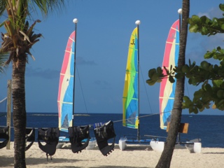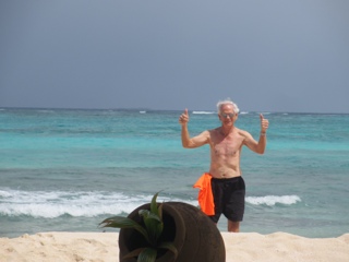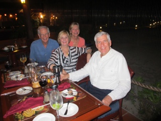 Pat and Nelson are biking and hiking everywhere. So far, no iguanas have scared her!!! It’s a fairly small island, so you can’t really get lost!! The food is plentiful and free — along with alcoholic beverages. The local beer, Hairoun, is quite good I’m told! Staff is very friendly and very helpful. The island does seem to lose electricity during the night. Though they haven’t said, I think they shut the generator off for a few hours! We do have direct tv in the bedrooms in the villa. Well, we’re all off to lunch and to swim on the other side. More later in the week if there’s anything to report !!!