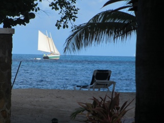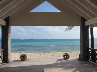 Well, here we are lazily and fully adjusted to “island life and time”! What a way to go! After a short boat ride from Union Island (accessed by a very small plane from Barbados), we have comfortably settled into our home for the week — in Sea Feather Villa. Some of the photos I’m posting are views out our back door where the ocean is literally ten steps away from the porch. Our side of the small island is very windy(good because it keeps you cool and it blows away any biting bugs!). The other side (short walk or golf cart ride) is much calmer waters and probably the better place to swim and snorkel. But for sheer beauty and reading a book, you can’t beat our back porch. Our fridge is filled with beer, wine, water and sodas– all the staples!!!