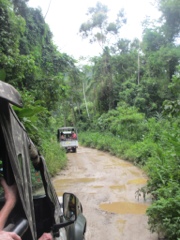 Our third stop on our jeep gold trail tour was a distillery where you can taste a very famous( and super strong ) local alcohol called cachaca! We were told it is 80% alcohol – not just 80 proof! Two thimblefulls and your done!!!! They took us to a greenhouse to see Bromiliaids– and while they were lovely, they were nothing different than what we see in Boca… We barely made it back to the tender before the black skies( which had been rumbling and grumbling ) opened with a typical rainforest deluge!! Not that it would have mattered if we’d gotten wet since the humidity is so high we all felt like we’d already been in a rain shower!!