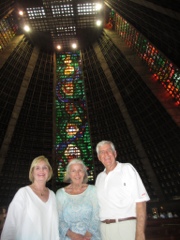 The day was very HOT but the skies were clear and we had gorgeous views from the top. We will do the famed Sugarloaf Mountain tomorrow along with Ipanema and Copocobana Beaches..After doing the Christ the Redeemer we grabbed a quick lunch at a cafeteria( fast and decent food) and then set off on a bit of a city tour. We saw the so called “new Cathedral” built in the style of Brasilia in the 1960’s.. It looks like an upside down Dixie cup…Inside, the stained glass windows are pretty and the glass was imported from Spain and Portugal.