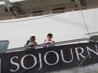 The second stop in Paraty was “Sliding Rock” where the local boys put on a great show for tips. They climb up the very slippery, wide rock and “surf” down standing up. Quite a feat to behold!!! After all, anyone can sit down and “slide” into the water. There were some in our group who were disappointed there was no time to swim. We got started about 40 minutes late because not all of our group made it on the tinder. The tender ride was one of the longest we’ve ever done! It took about 45 minutes. When the tide goes out, the bay gets very shallow which is why our ship had to anchor so far out!