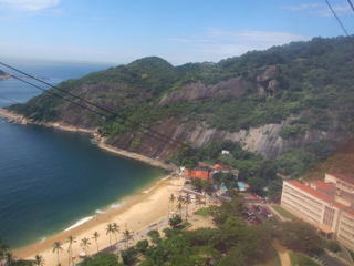 We made it to the top and the views are spectacular. It’s like looking down on a giant map where you see the whole (or most of it) of Rio and its beautiful and famous beaches! As a bonus, because of the closures there were very few people at the top. We did have one small hiccup. Our guide had turned in the vouchers for our tickets to the top of Sugar Loaf and didn’t realize they only gave him tickets for the first half of the tram, BUT NOT a ticket to the top! When he discovered what had happened he went to get them to give him the other half ticket but they wanted another voucher which he didn’t have. It was resolved with my credit card for another round trip to the top ticket. The young man will turn the receipt into his company and they will refund me the money… So it was only a slight delay.