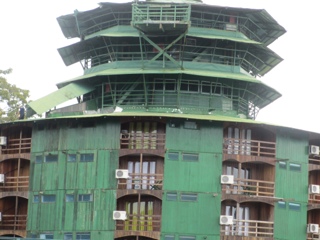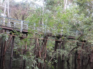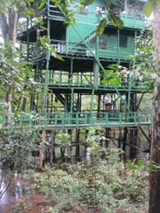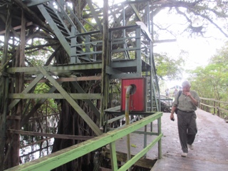We visited a hotel that is literally built in the trees! There are several large round towers that hold guests. The hotel was first conceived back in the 1980’s when Cousteau came to the area to explore the region. He thought the area was so beautiful, he suggested they build something to allow others to see the area. The reality TV show, Survivor, Amazon was filmed here using this hotel as a base. Also,the movie, Anaconda, was filmed here by George Lucas. While the Hotel is very interesting and a great place to visit and walk around on the suspended walkways, I don’t think it’s a place I would want to spend the night.