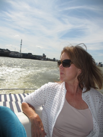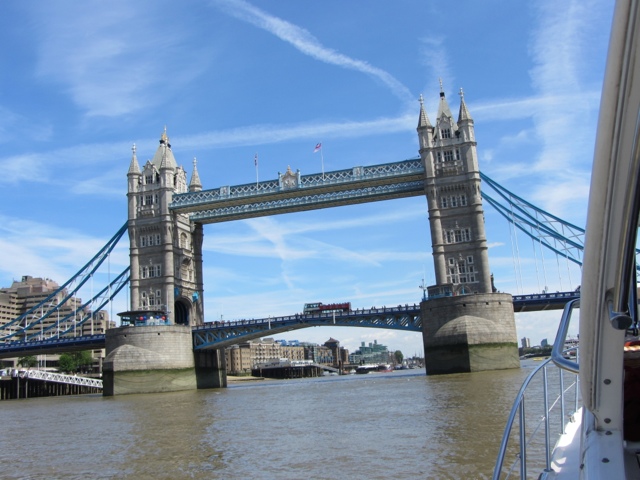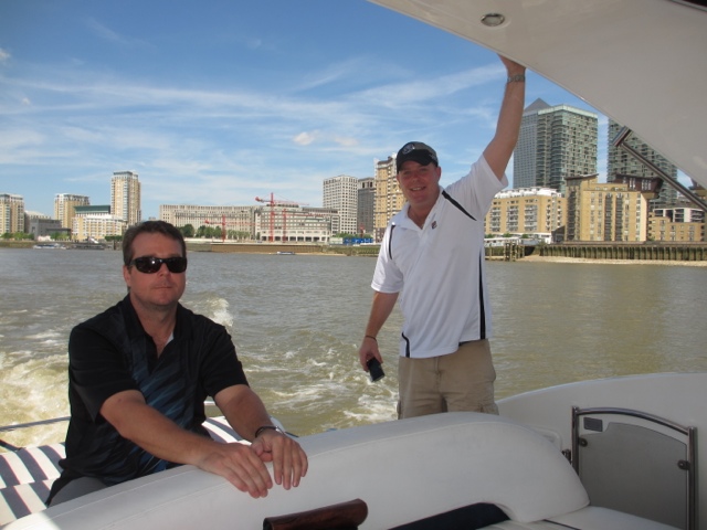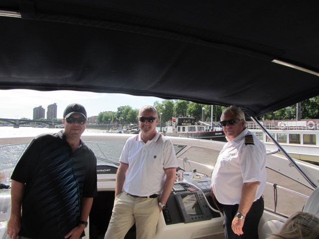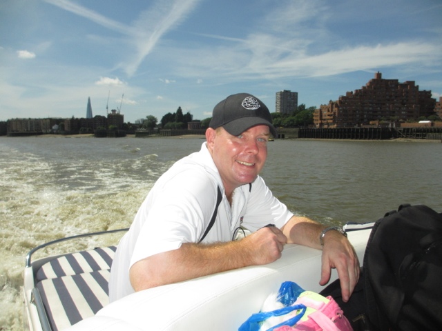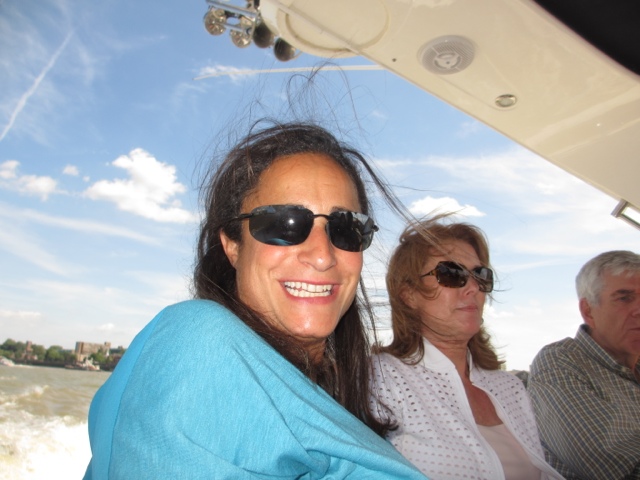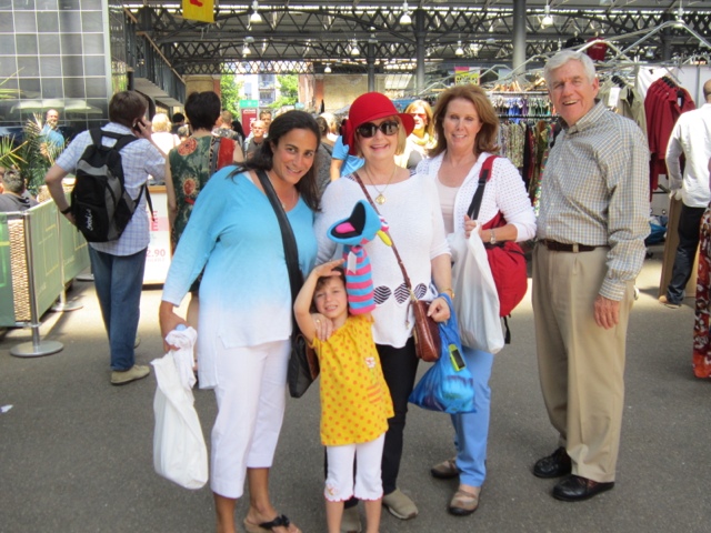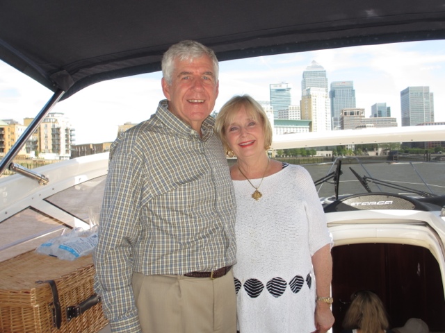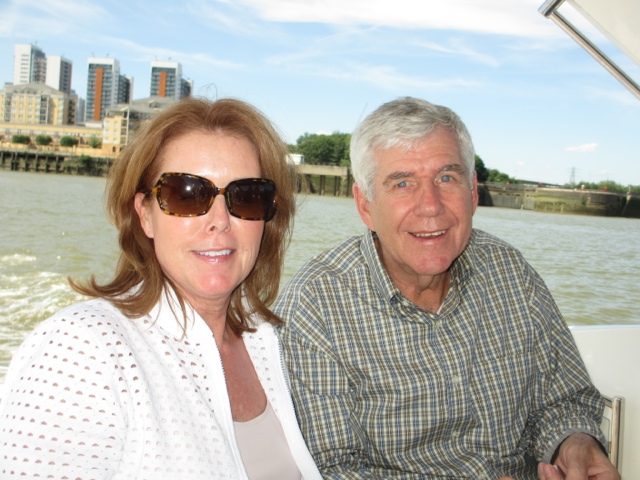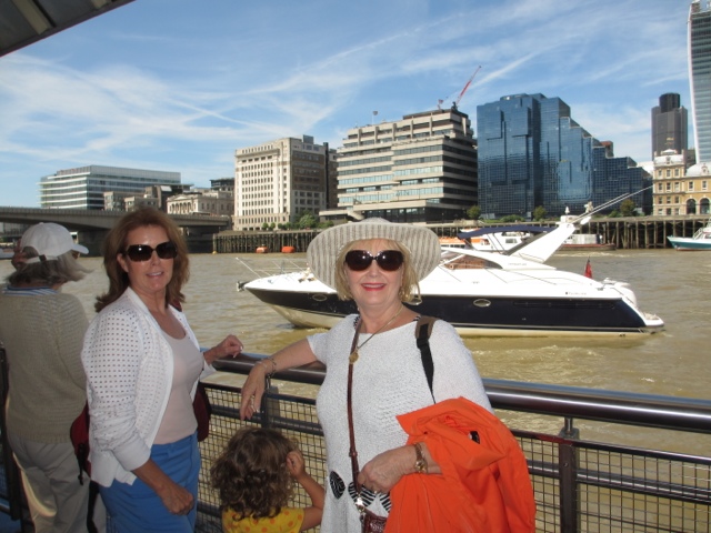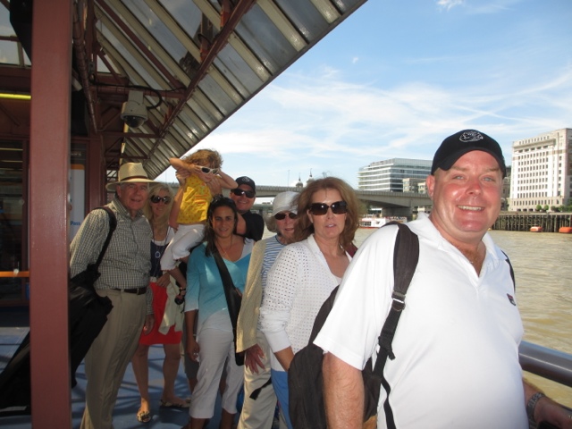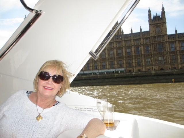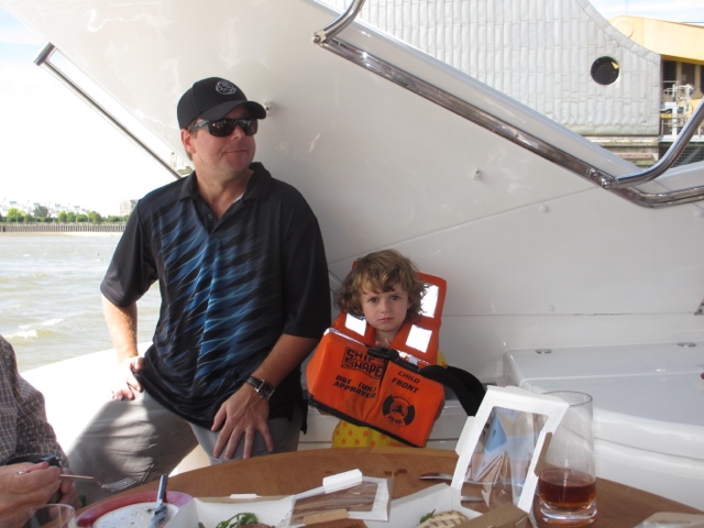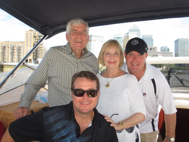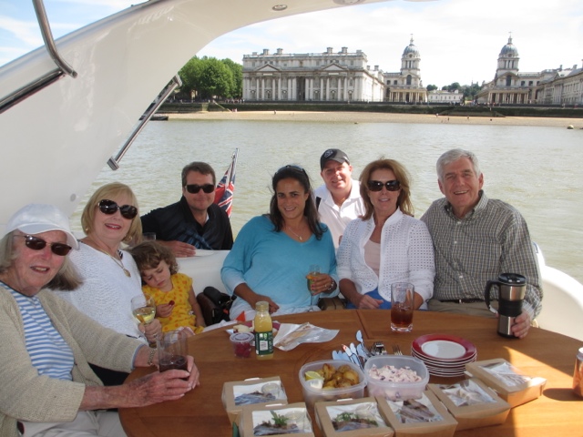 Now, back to today!  After the Market, we headed for an amazing boat ride on the MONEY PENNY down the River Thames.  Our boat trip included a delicious picnic lunch!  The weather could NOT have been more perfect!  We were so lucky!  After our great cruise, we had been invited to the beautiful penthouse home of wonderful friends, Kevin and Erika Strom.  Kevin is the son of one of my closest friends and he and his wife, Erika, live and work in London.  Our oldest son, Trey, grew up with Kevin and his brother!  There were a lot of stories being retold and good times remembered!!  The dinner was delicious and the company delightful!!