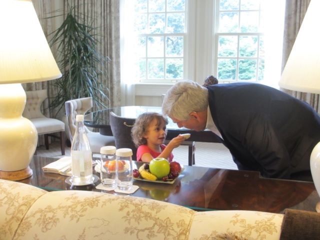 The plane was equally nice and very empty so we basically had the run of the upper class cabin! We all proclaimed it our nicest ever flight… We arrived in Washington, retrieved all our luggage and checked in at the fantastic Hays Adams hotel. We overlook the Washington Monument and the Hotel is located on the Mall. In fact, Bill and Grant are out walking the city trying to avoid the frequent rain showers that are coming through. The rest of us are headed to bed in varying stages. Annette and Gaby fell first, followed by Duffy and then Trey. I’ll probably be next followed by Bill and Grant bringing up the rear! We have a full day of touring tomorrow!! Not many photos tonight, but enough to give you the flavor of our flight day! Lots tomorrow!!
