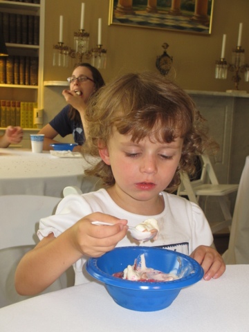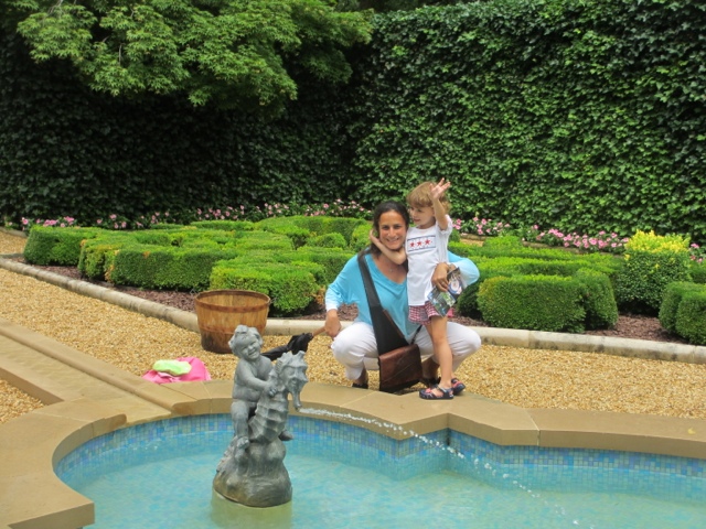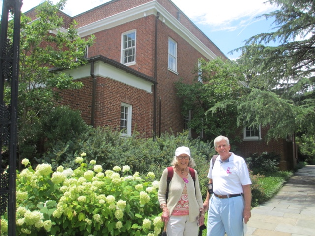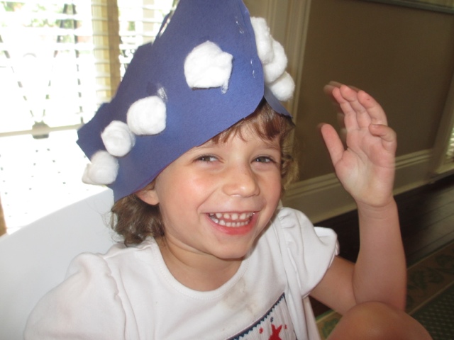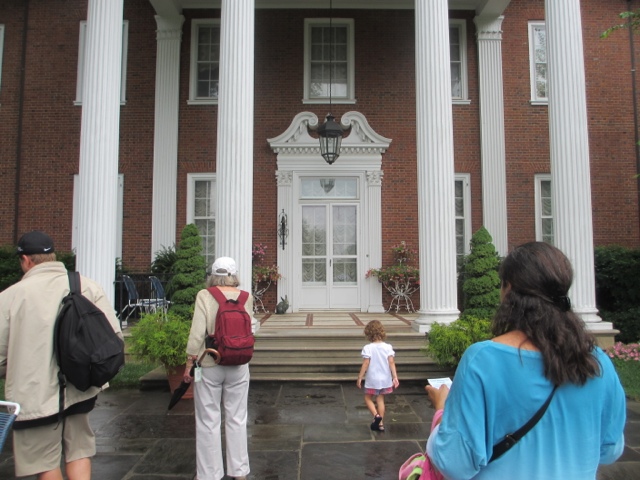 After our tour of the house and lunch, we went for a tour of Tudor Place — built by George Washington’s , step-granddaughter , Martha Custis. There was a wonderful ice cream social at Tudor Place that we all enjoyed and Gaby made a Colonial Tri Corner Hat. The house itself is not so impressive. Tomorrow we visit Mount Vernon…–after the July 4th parade. We’re hoping for a semi-dry day!! HAPPY 4th!!