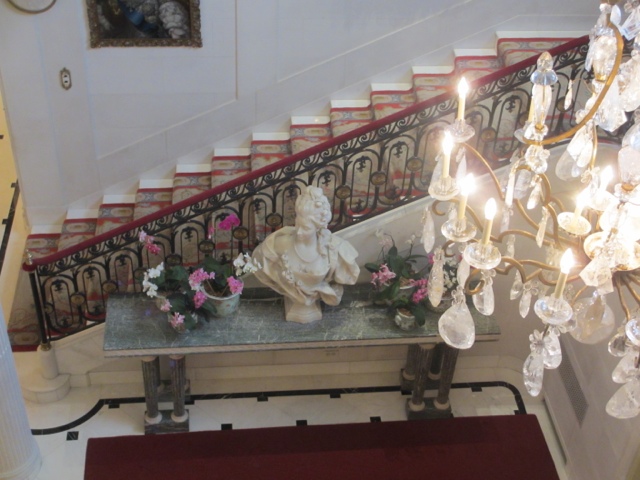 Today we set out to visit the Hillwood Estate and museum — former home of Marjorie Merriweather Post.. She was born in 1887 and was the only child of C.W. Post, founder of Postum Cereal Company which became Post Cereals. ( think Grape-nuts and Post Toasties and Raisin Bran). After the death of both her parents, at the age of 27, she became one of the wealthiest women in America. Her second husband was E.F. Hutton and their only daughter is Dina Merrill, the actress. While married to Hutton, the Postum company was transformed into the General Foods Corporation. She divorced her second husband and married US Ambassador Joseph E. Davies who was posted to Russia for 18 months. During this time frame, Marjorie discovered a life long passion for collecting Russian Imperial art. While posted in Russia as the wife of the US Ambassador, she began the nucleus of her Russian collection. She also collected many fabulous treasures from France.. She divorced her third husband after 20 years and purchased Hillwood Estate in 1955 — a 25 acre estate that became her home and a future museum for her extensive collection of French and Russian art.. At her death in 1973, her estate was opened to the public per her wishes.