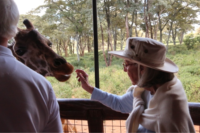 After the tour of the Blixen House, we went to feed the giraffes! How much fun that was! Duffy even fed several. Their lips are velvety soft and on so gentle as they take the pellets from your hand. In fact, they are so gentle, you can “kiss” the giraffe by putting a pellet in your teeth and the giraffe will gently take it from you. I have a great photo of Grant doing just that, but unfortunately I couldn’t download