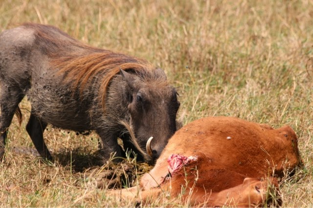 We also saw a warthog eating a dead cow that wandered away from the Masai.. Warthogs are not meat eaters and our guide who grew up here has never seen anything like that before!