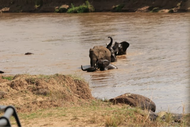 Baby elephants struggling to cross the Mara River!