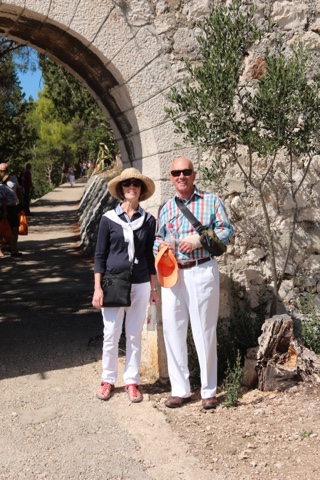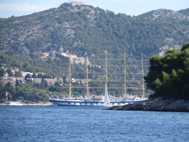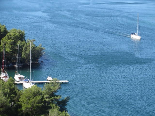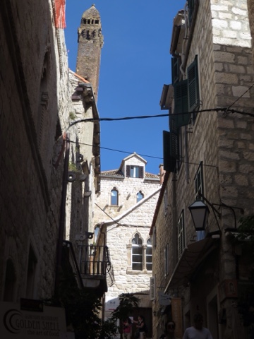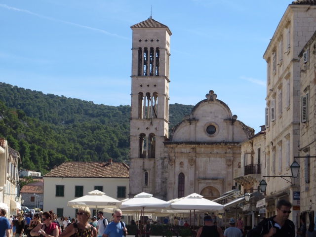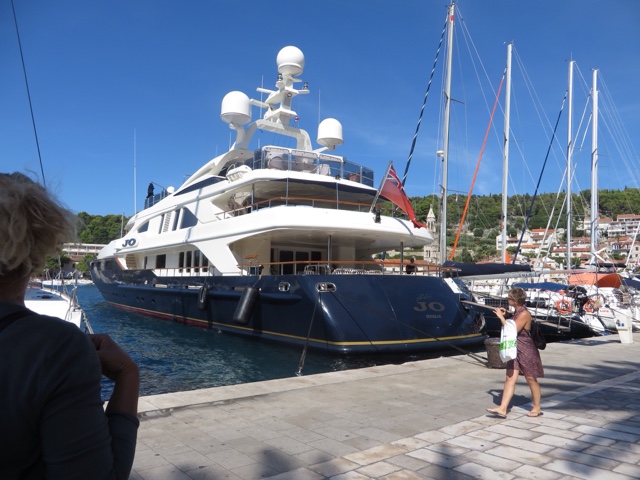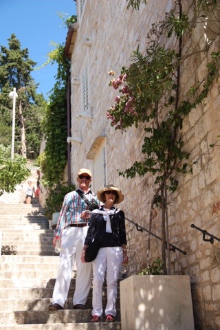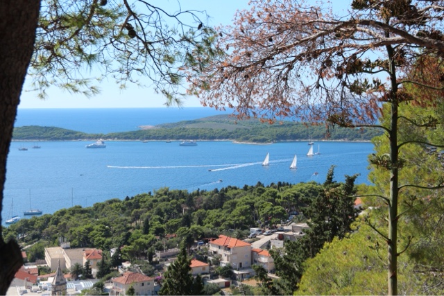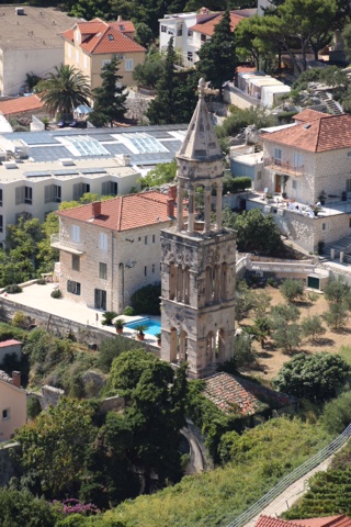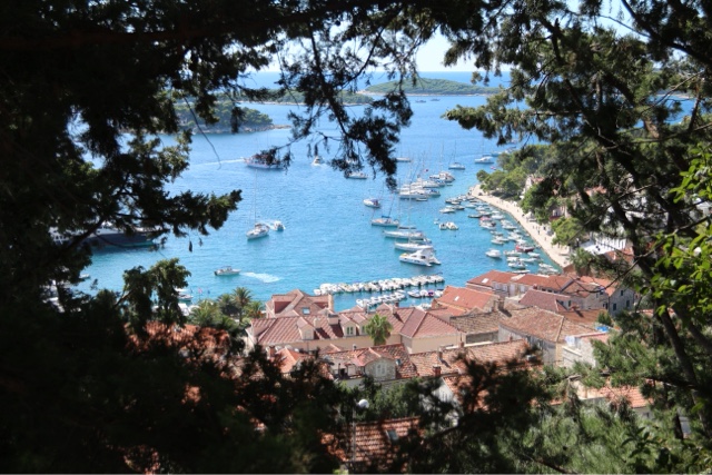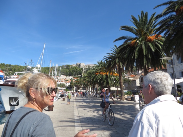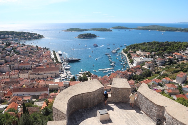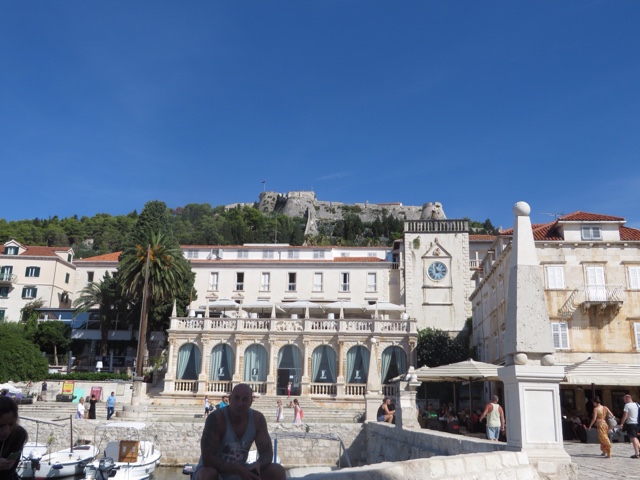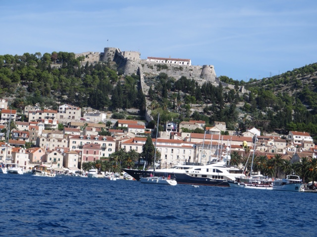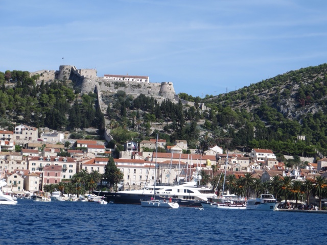 So today’s adventure was all about GORGEOUS weather (no clouds in sight) and a speedboat ride for about an hour to cross from Split to the luxurious resort island of Hvar. Hvar is well known to the rich and famous, many of whom have visited often for the crystalline pure waters and the magnificent weather. Hvar has more days of sun then any other place in Croatia! The harbor is covered with beautiful sailing yachts and Luxury yachts! It is no wonder the rich and famous love this ancient island of Hvar. It dates from the Romans in 500 AD who founded the area. But the fort on the top of the town was built in Roman times and later the area was very influenced by the Venicians who occupied the island from the 13th – 17rh century. There is not a lot to talk about today, because today was all about the “view!”