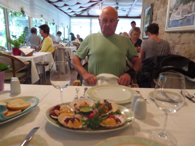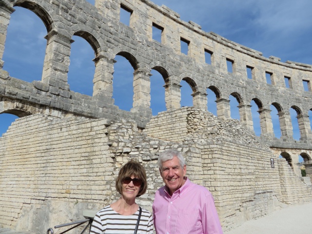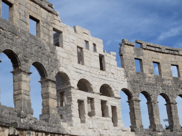 We started off the day with a bit of a surprise. Our friend, Tom, came to breakfast with a very swollen hand. It was warm, red, and tender to the touch. We all decided it merited a trip to the Pula (largest city around with about 65,000 people) hospital. It happened to also be an Ironman race day with the finish line inside an extremely well preserved amphitheater! We managed to miss most of the ironman contestants on our way to the hospital. Everyone was very nice and though we all suspected a hairline fracture it turned out to be either a contusion or tendinitis. They took X-rays, but the Dr. wasn’t 100% sure and told Tom to get it xrayed again if it was still swollen in 10 days.