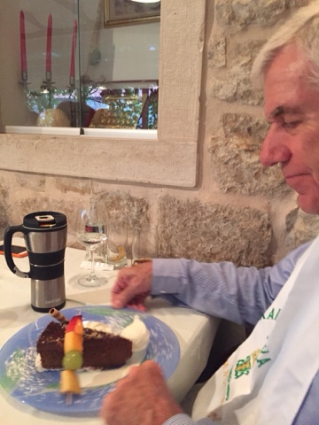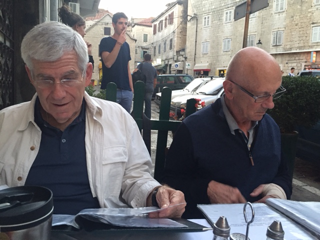 So, this is a very short blog tonight because we spent 6 hours driving to Split from Rovinj. By the way, we had a great driver the last few days. He goes by the name of Dom and he was terrific. He actually learned the locations of two new hospitals thanks to Tom Roddel. At breakfast this morning, Tom’s hand was more swollen and his discomfort was really escalating. We all decided we needed a second opinion! We feared the first X-ray machine might have been so old that you wouldn’t be able to see a hairline fracture.