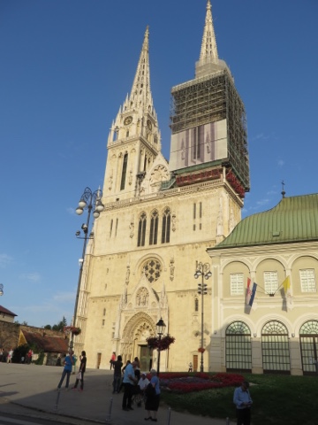 We’ve arrived in beautiful Croatia- first stop was Zagreb, the Capitol. Though a bit jet lagged, we set off immediately on a 2 hour walking tour. We definitely got a “taste” of the city before we caved. It’s a lovely city with a real sense of energy and joy. It was a Friday evening and there was a festival in the old town area, but even so there was an energy to the city as night time approached. We stopped (I might say I collapsed, after a 3 mile walk) at a lovely restaurant with street side tables for a wonderful dinner! We all wished we had the energy to return for the festival in the city center, but our legs and eyes were giving us a different message!