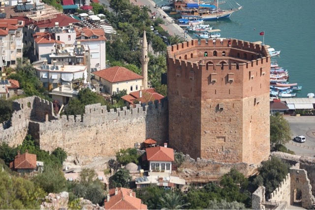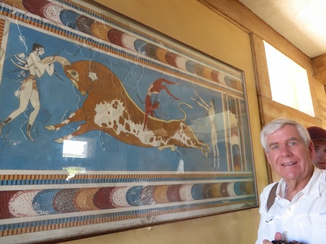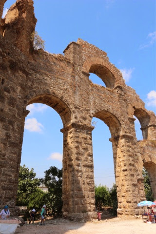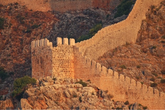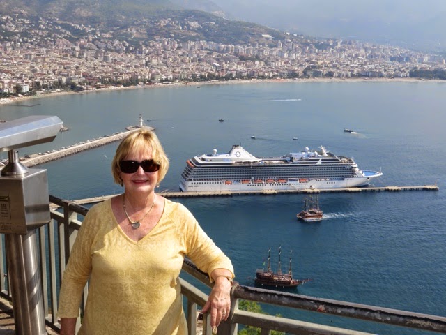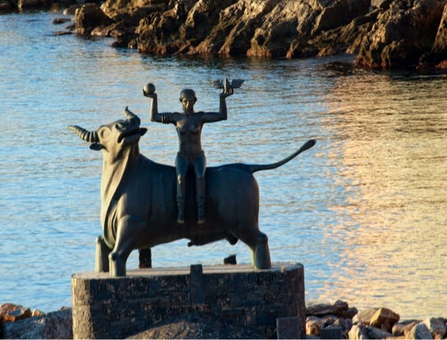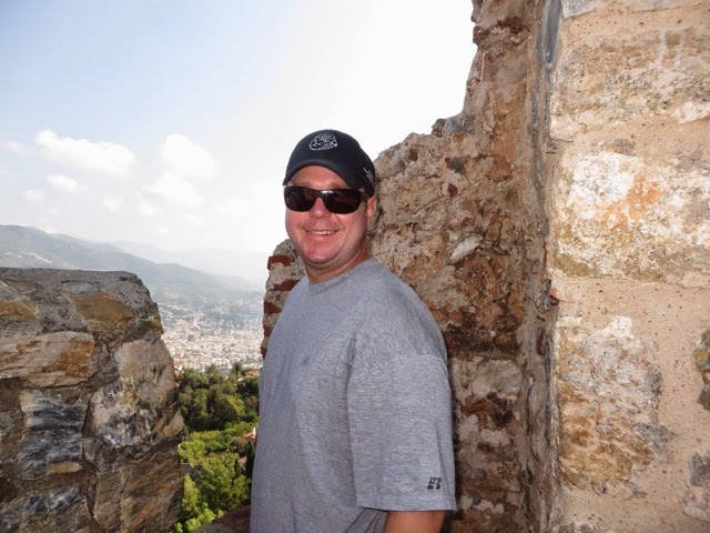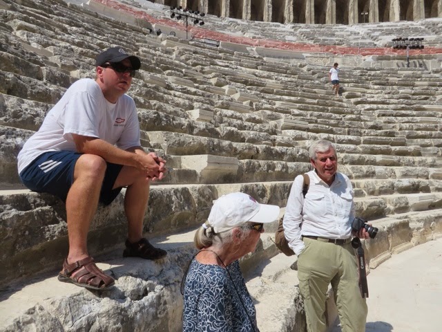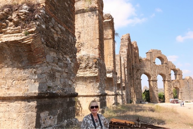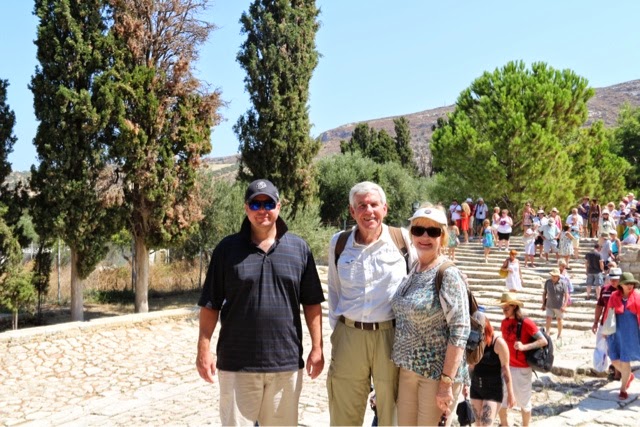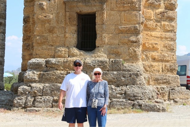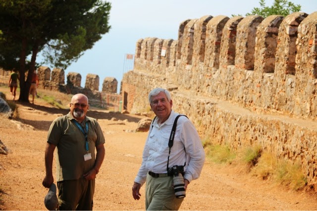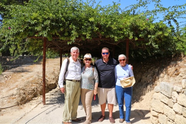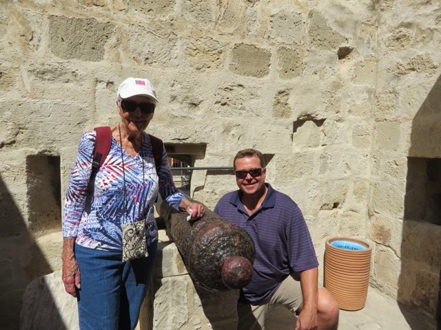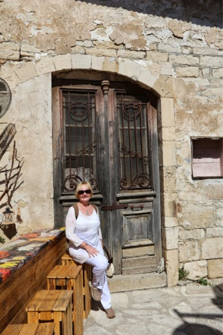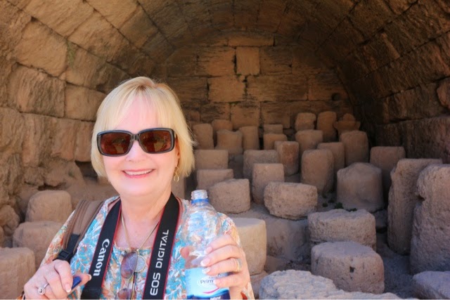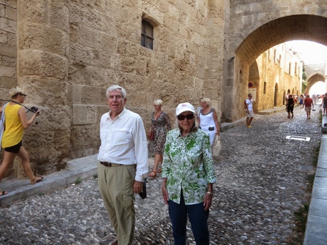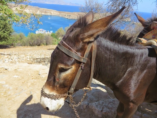 There are 298 steps to the top of the Acropolis in Lindos. You can walk up (Trey and the guide walked up) while Bill kept me company on a donkey ride up. Duffy we “parked” in a nice cafe with a bottle of water and a glass of orange juice! The donkey ride up was a lot of fun. We all walked down (good thing because there were a lot of cute shops on the way down!). From the charming village of Lindos, we drove about 45 minutes back to the Medieval section of Rhodes. Our driver dropped us off on one side of the “old city” and we walked through to meet our car on the other side before returning g to the ship.. On the ride back, we noticed two deer on pedestals by the city harbor. The deer are a symbol of Rhodes. It turns out the dear were revered because hundreds of years ago they were responsible for killing all the poisonous snakes on the island with their hooves! (Bill was delighted to hear about the deer!). There are still deer on the island today up in the mountains, but they are protected..