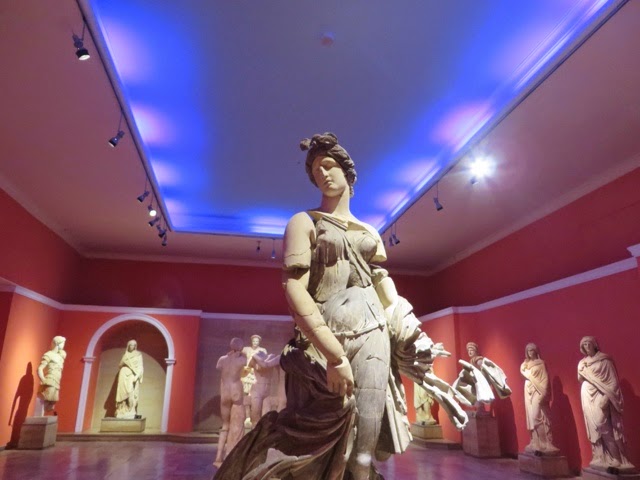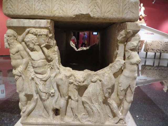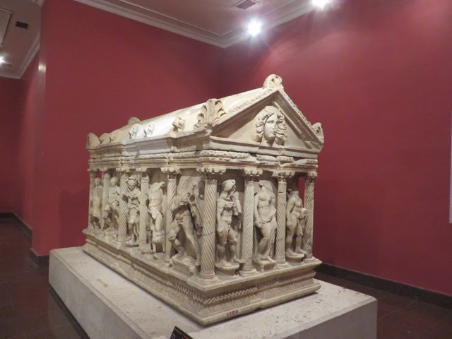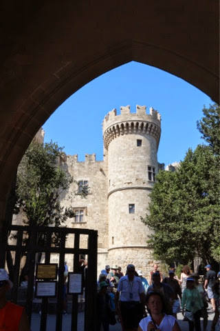Our walk through the medieval city was lovely. We walked down the Street of the Knights… The knights of St. John came to Rhodes from Jerusalem where they had originally settled to care for pilgrims during the crusades. The Knights of St John of Jerusalem originally went to the Holy Lands as non political beings in order to provide care for the Pilgrims making the long journey to the Holy Lands. They are the founders of the first Hospitals. When the Ottoman Empire expelled them from Jeruaalem, they eventually settled in Rhodes. They built the first hospital here which we walked by today. We saw the palace which housed the Grand Master ( think Head of the Knights). When Italy, in the modern era, invaded Rhodes, Mussolini began building an enormous summer villa in the Castle of the Knights. He was never able to move in, however, due to the outbreak of WWII.