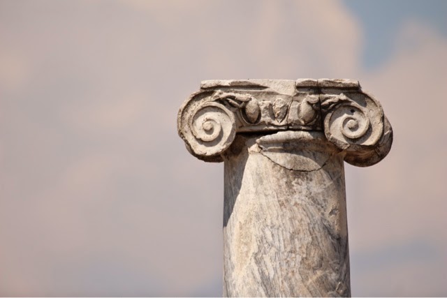 Behind me was an area where people presented precious gifts to the Goddess Athena. The pedestals behind me were placed there by the archeologists of today, but this room was originally for the precious gifts presented to the Goddess…