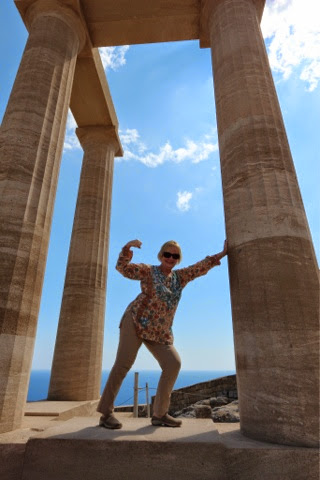 We met our lovely, knowledgeable young guide, Crystal Dachretzi, who proceeded to take us to our first stop, the beautiful village of Lindos where there is an amazing Acropolis that was dedicated to the Goddess Athena. On the way to this amazing village ( now declared an historical site ) we learned a