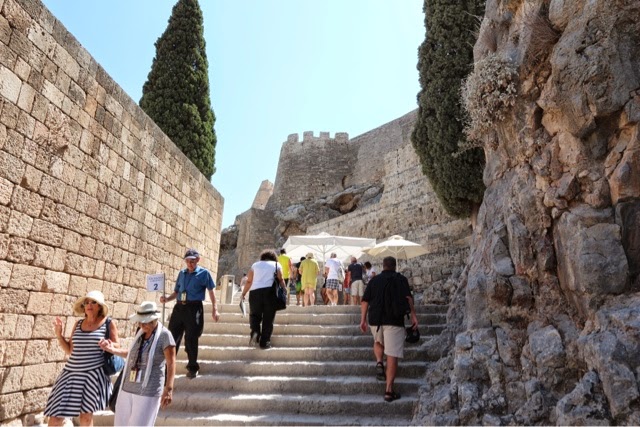 Little history about Rhodes. Actually, we learned a lot about the history but there is no way I will remember it all.. Lindos , though, because it is an historical archeological site, allows NO new buildings. You are not allowed to change ANYTHING, ( inside or out) of these archeological homes and stores. You may maintain but not add to any of the current structures.. Lindos is a prized place to live! Once people acquire a residence, they do not usually sell. Pink Floyd was was of the first outsiders to purchase a vacation home there..