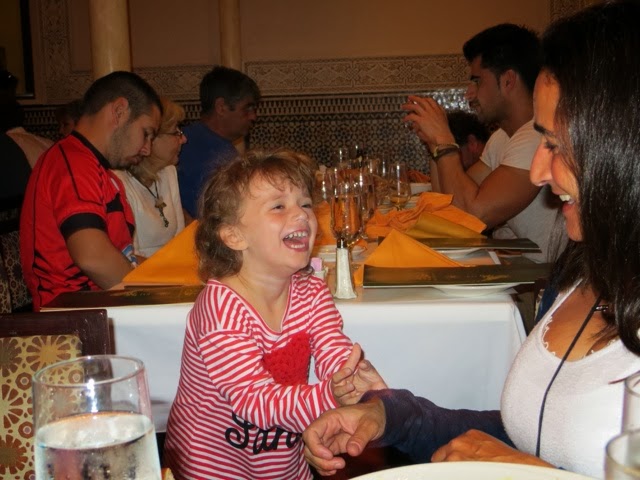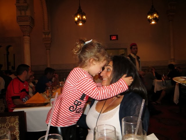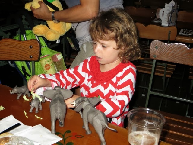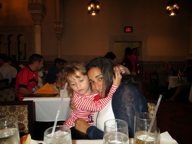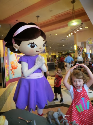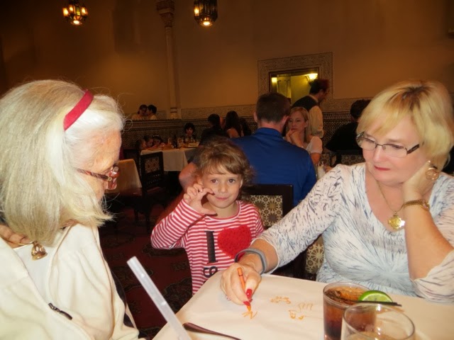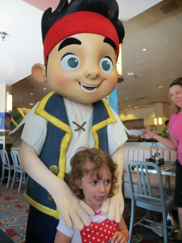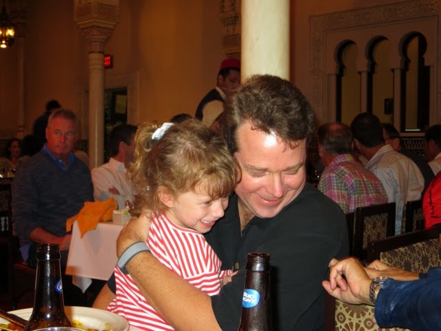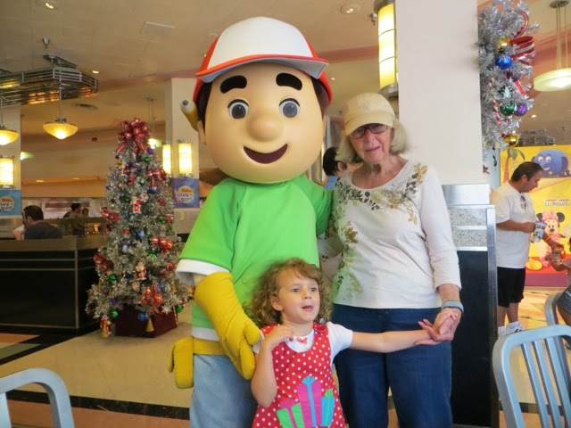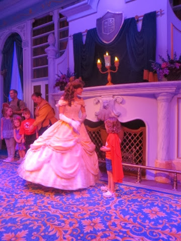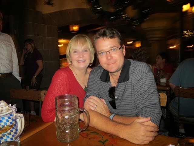 What a wonderful last day we’ve had! We’ve been blessed with very warm weather but not too hot! We met Elly and “our girls” at 9:30 am at Disney’s Hollywood Studios. We were quickly off to great rides. There was Toy Story, Beauty and the Beast show, Star Tours and The Great Movie Ride as well as Stars Wars Encounter. Grant went to ride the big Roller Coaster Ride before taking off for ESPN at Disney Boardwalk to watch the Dolphin’s FANTASTIC win!!!! Trey stayed with us through the character lunch where Gaby could see some of her favorites—Jake from Neverland Pirates and June from Little Einsteins! She danced with June and hugged everyone! We ended up with great seats at the Beauty and the Beast show and Gaby loved every second of it — as did we! Trey bailed after lunch to go catch some of the game, but alas when he got to ESPN zone they were at capacity and wouldn’t let any more people inside. It took him an hour and a half to get back to our hotel. There just wasn’t a quick way back to the Grand Floridian. He did make it back to the room in time to see the 4th quarter! As soon as the game was over he and Grant rushed to meet us at Germany. They will not seat your group until you are all there! Everyone made it, but it was a bit like herding goldfish!