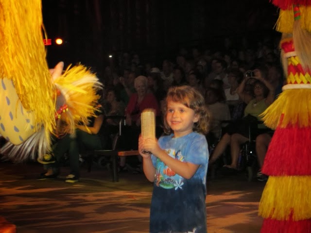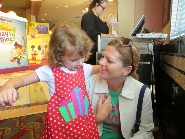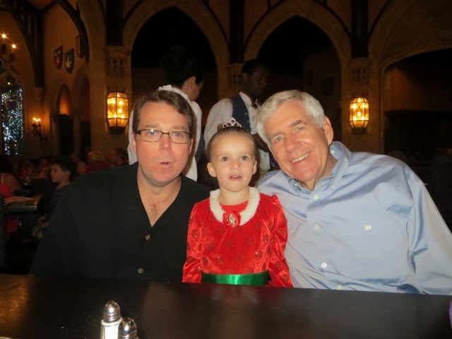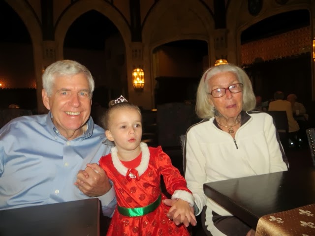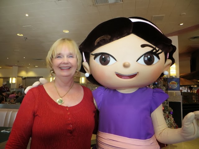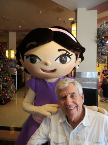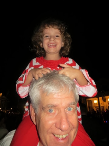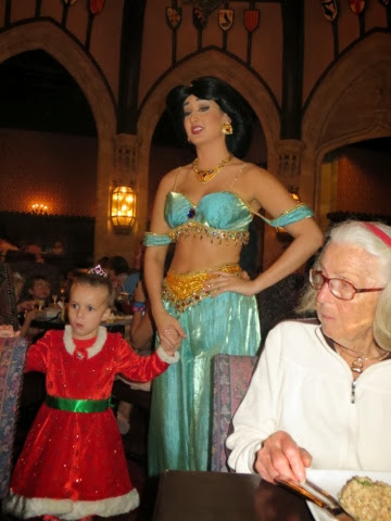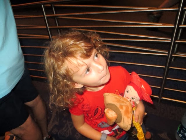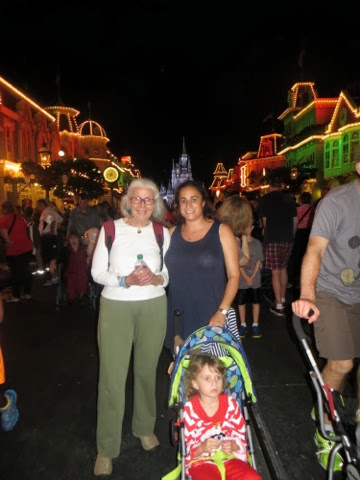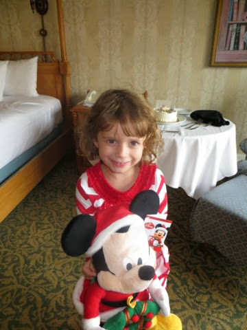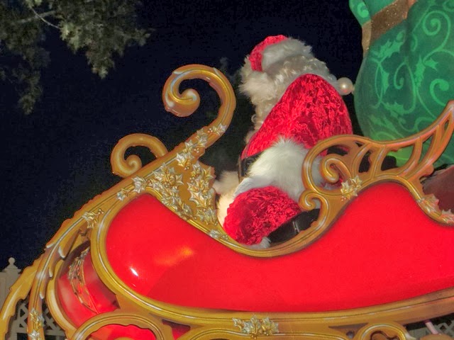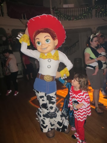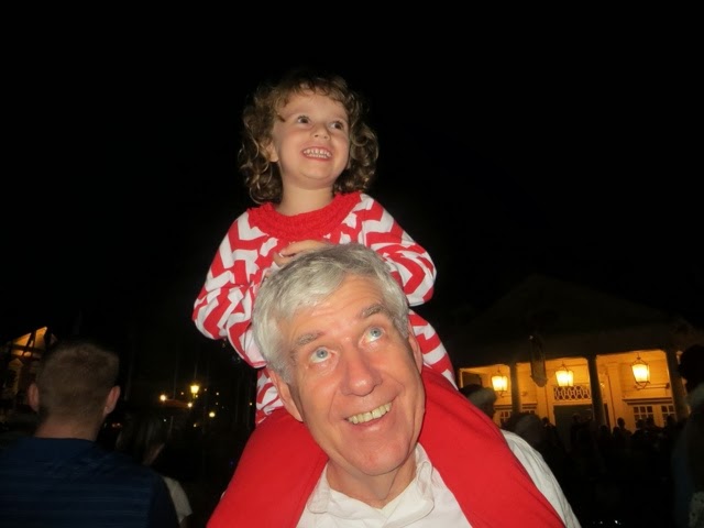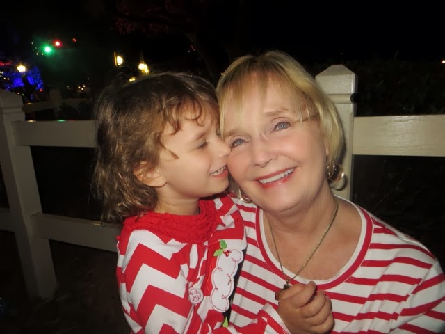 out free hot chocolate and other goodies at several locations.. But the best part was the Christmas Parade! WOW! It’s a definite Disney Spectacular! And, of course, Santa manages to come by at the end of the parade in his wonderful sleigh. Gaby was enchanted with everything! But, I think her favorite was the Toy Story Float with Woody and Jess. She had brought her very own Woody from home to watch the parade. She got so excited! I was busy trying it take photos of her and she said, “Gigi ! Take a picture of that please!”