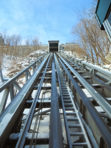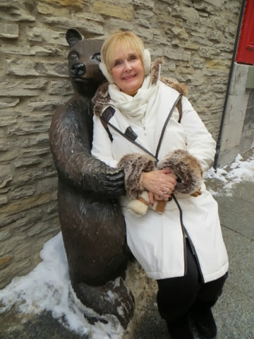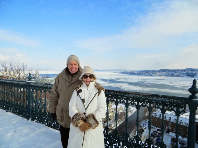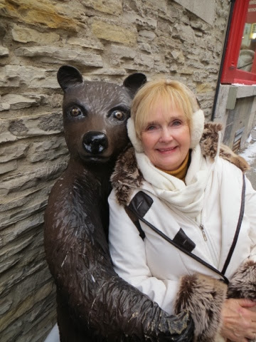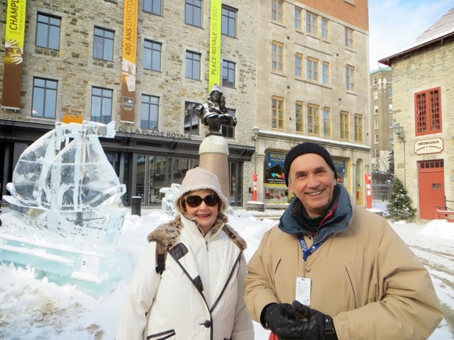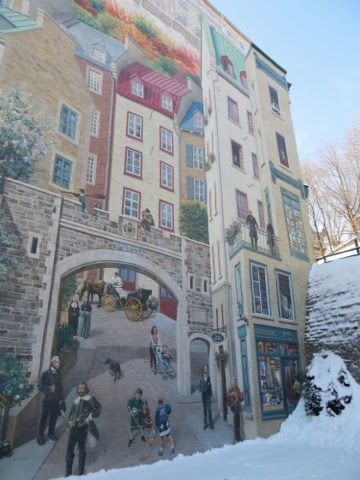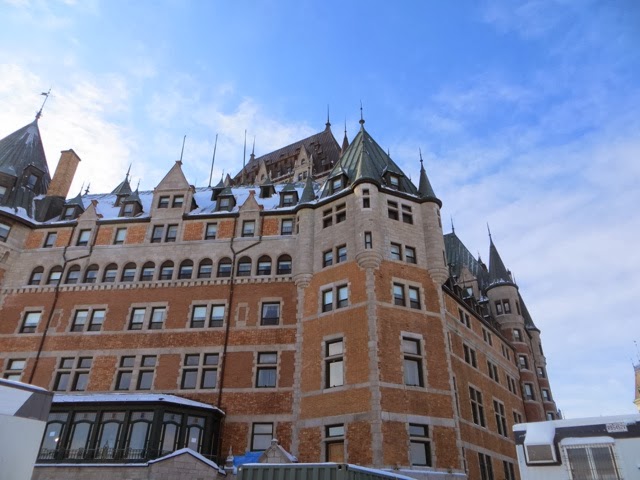 Well, today was breathtakingly beautiful, but very cold! Bundled though we were, after 3 hours of a walking tour of the old city, my toes were numb! Basically, our hands and feet got cold, but it was so worth it! We had a wonderful guide, Francois Vidal, who explained in thumbnail sketches, the centuries of history that surround this French Canadian city. It is really a tale of three cultures–French, British, and the eventual merging of the French who lived here to Canadians! The architecture is French and British and sometimes, a combination of the two . I wish I could remember all of the fascinating details. Suffice it to say, if you ever come to Quebec, do the historic walking tour!!