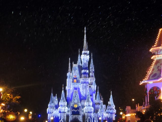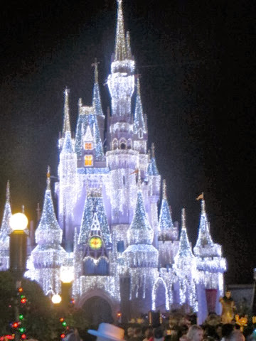 Well, we have just finished attending Mickey’s Very Merry Christmas Party in the Magic Kingdom. It’s a very special Christmas party. It was snowing on Main Street. Cinderella’s castle is draped in icicles and they are handing