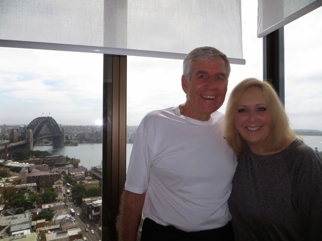 Our trip started out from Miami on Tuesday, the 11th and we landed in Sydney on Thursday, the 14th at 7 am. It was a bit of a dicey start, because the plane out of Miami was delayed 2 hours! When we landed in LA, we had 25 minutes to get to the next terminal an board our flight to Sydney. I didn’t think we had a prayer of making it, but they held the plane for us. Kudos to American/Quantas personnel who met us as we stepped off the plane. They put Mary in a wheel chair and whisked us off to an awaiting shuttle which drove us across the Tarmac to the new terminal. Once inside, there was an awaiting cart that sped us down the hall to the next gate! We were the last three passengers to board but we made it and so did our luggage. The plane left about 30 minutes late, but we still arrived about 20 minutes early into Sydney. ( Must have had a great tail wind)!